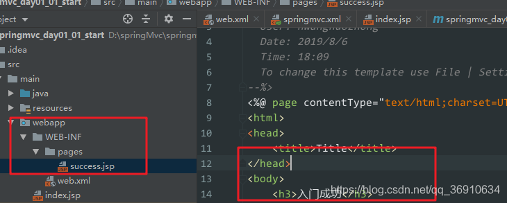 5. 在WEB-INF目录下创建pages文件夹,编写success.jsp的成功页面