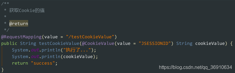 用于把指定 cookie 名称的值传入控制器方法参数。